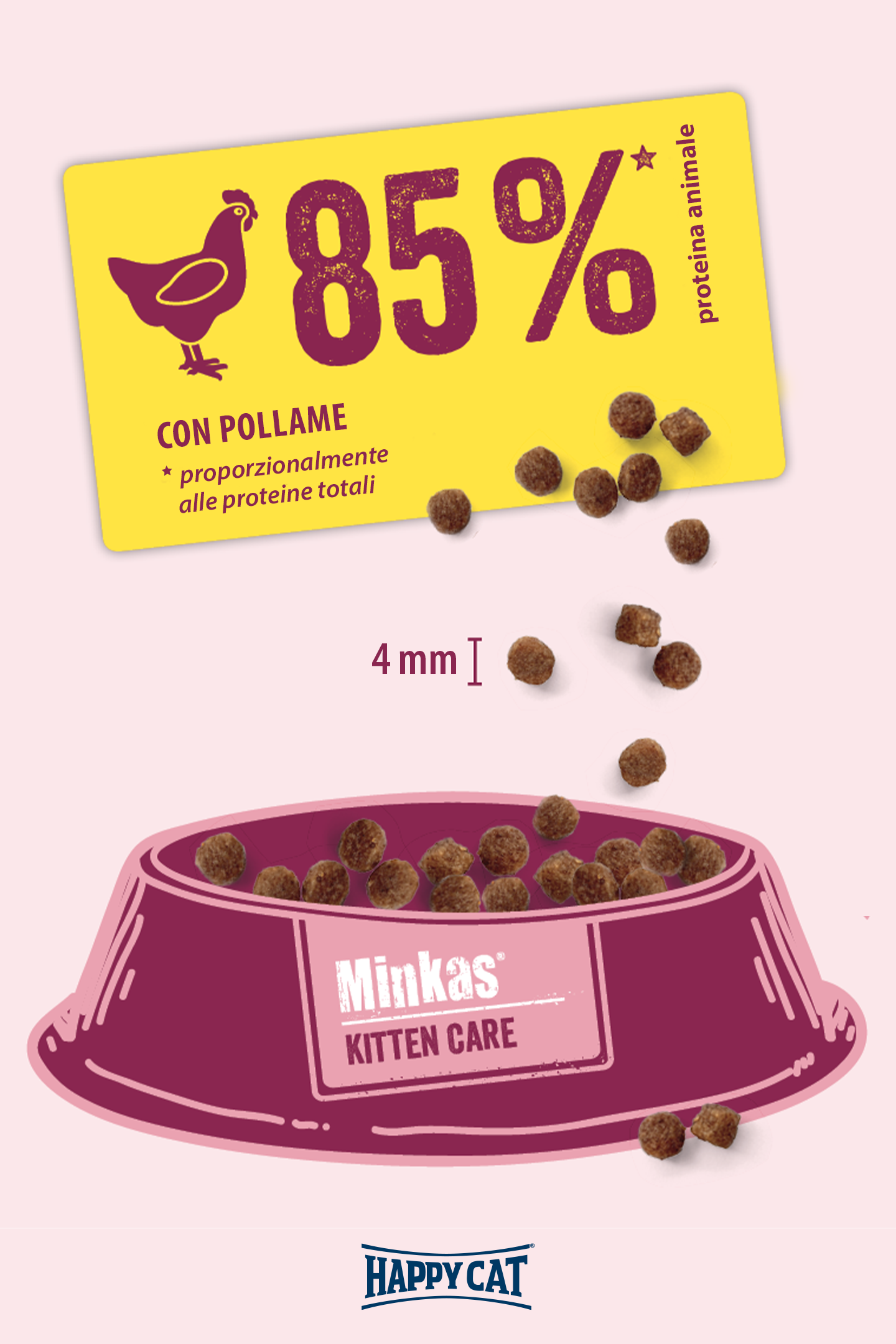 * A seconda delle preferenze del gatto (dimensioni delle crocchette), si può passare da Minkas Kitten a Minkas Junior già a partire dai 4 mesi di età.